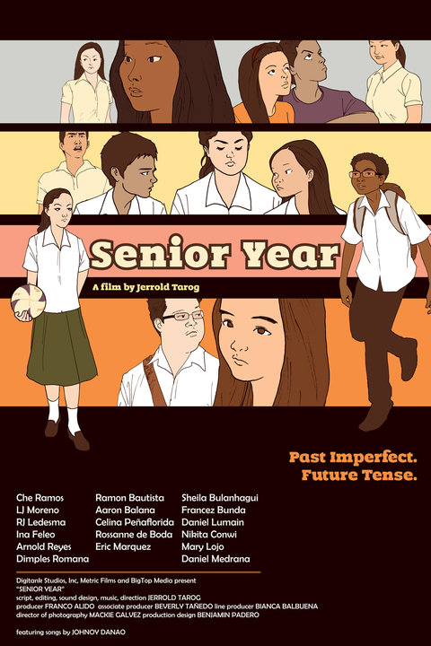 SENIOR YEAR is written and directed by jerrold tarog. he also edited and scored the whole thing. cinematographer mackie galvez, prod design benjamin padero, assistant director bianca balbuena, sound nicholas varela with songs by johnoy, danao, executive producer beverly tanedo, produced by franco alido.