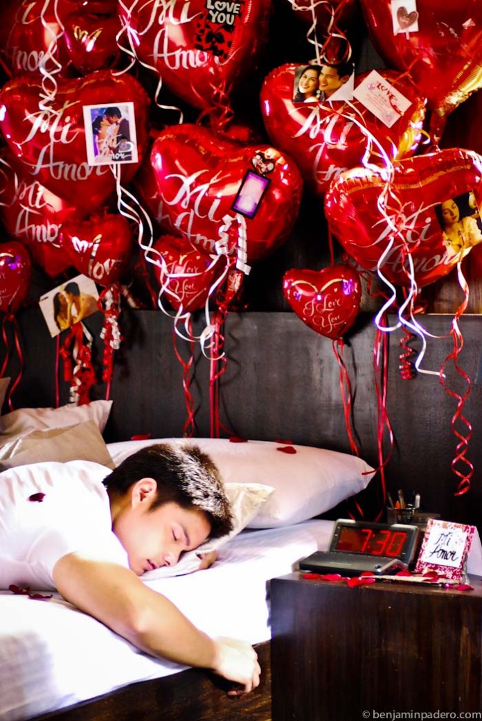 romantic candle votives from SM and fake champagne. roses are from dangwa, of course