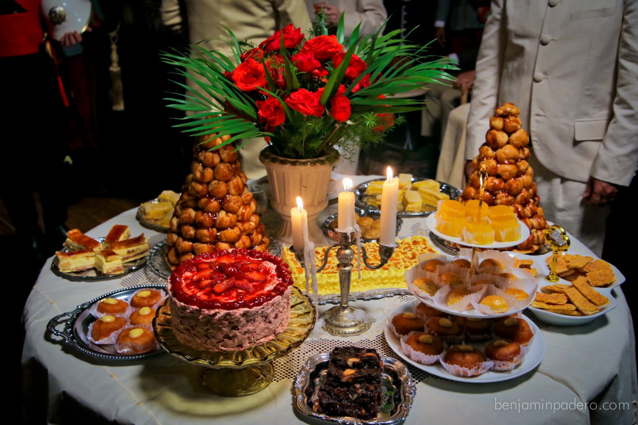 the spread prepared by chef toto gonzales and chef gene. i explained to chef gene the scene would have been after dinner where the guests would have milled around to chat and gossip. chef gene suggested this lineup. we also discussed plating and i took notes, including flower arrangement!